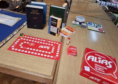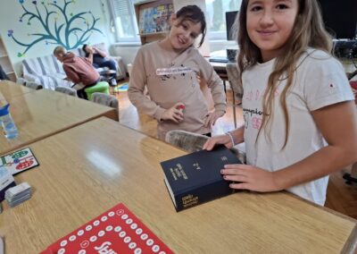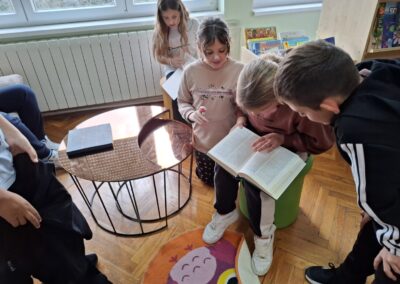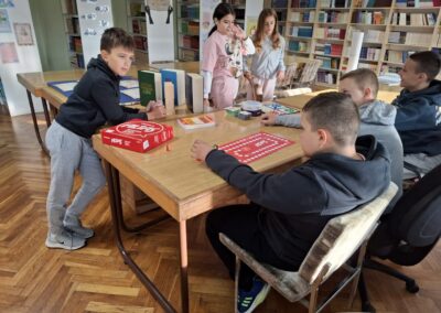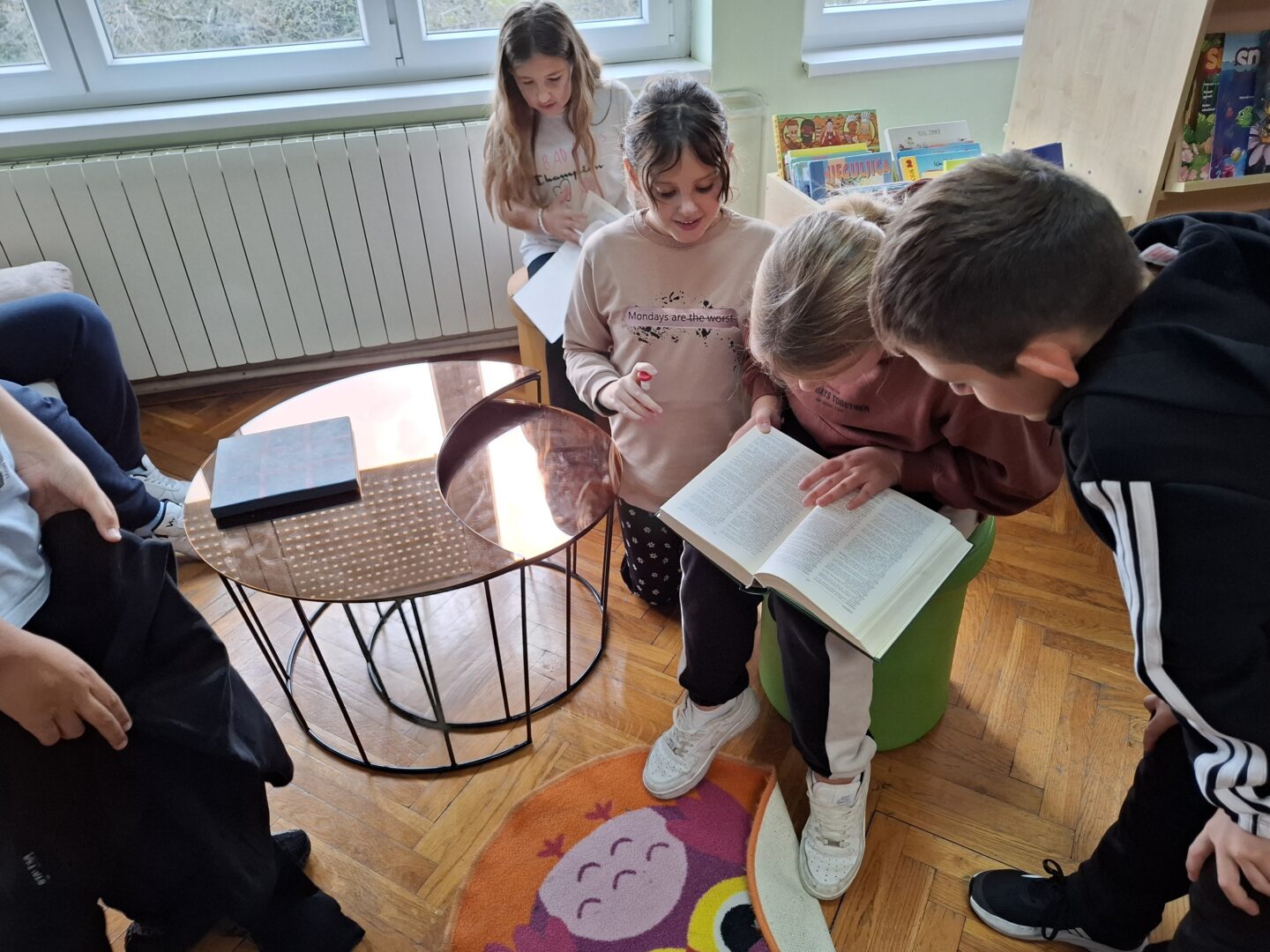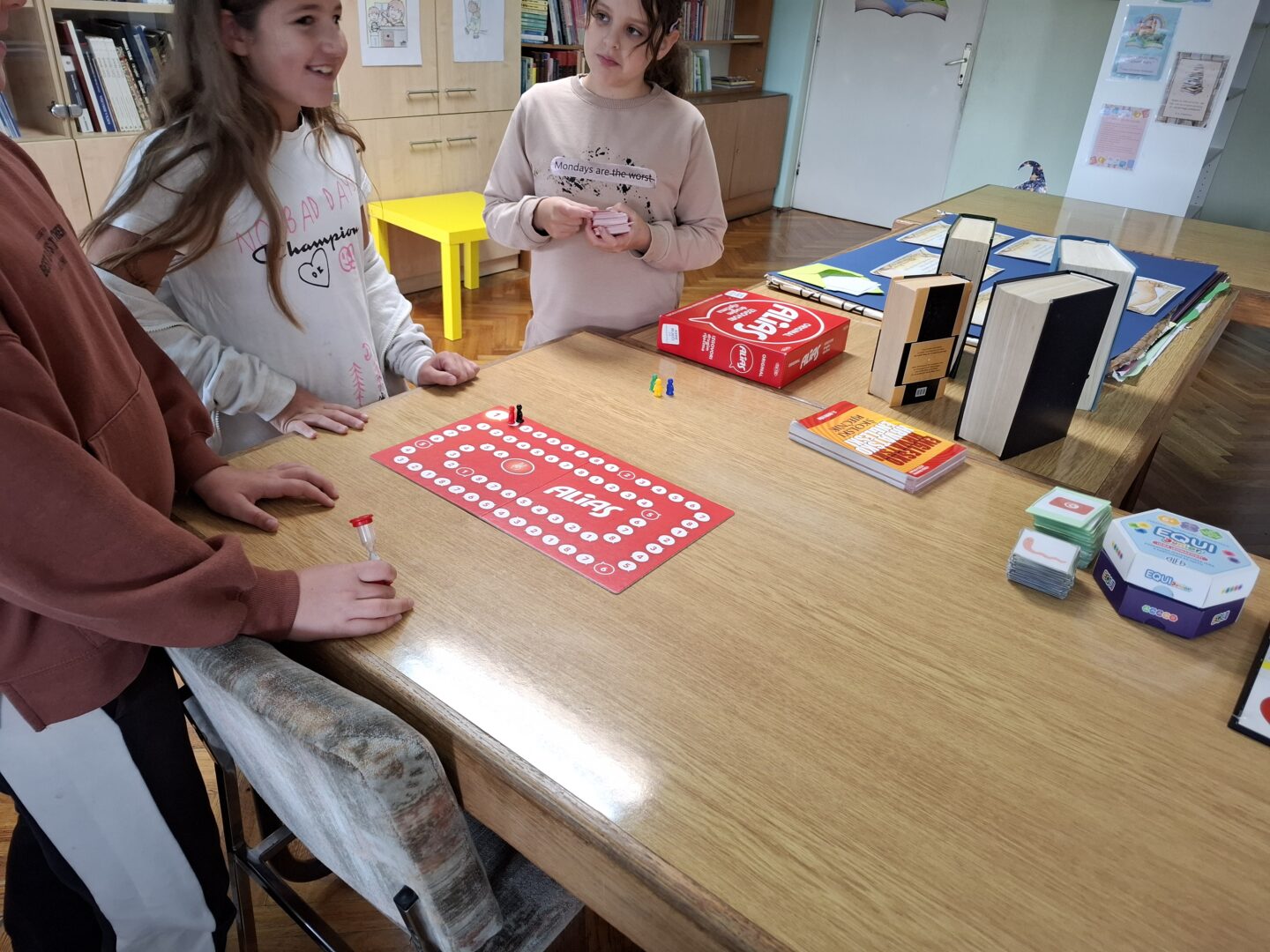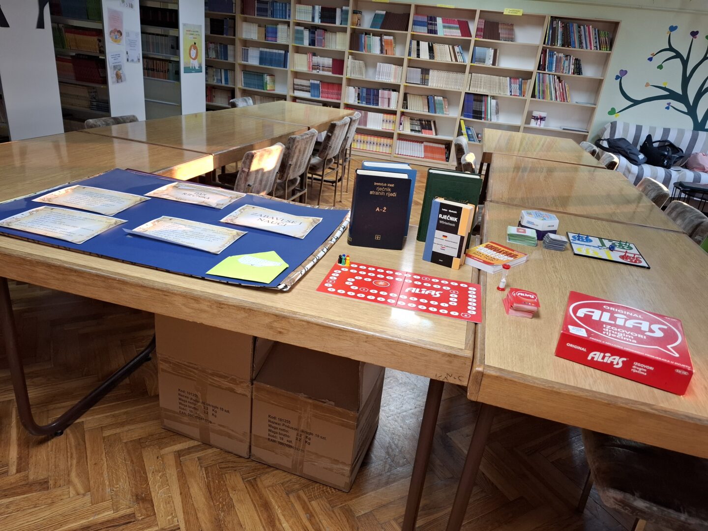 Danas smo u školskoj knjižnici obilježili Dan rječnika. Knjižničarka je postavila malu izložbu rječnika, pripremila plakat i aktivnosti za učenike. Učenici su tražili nepoznate riječi u rječnicima, ispitivali svoje prijatelje o njima i pamtili nove riječi. Zabavili su se traženjem što većeg broja riječi u osmosmjerci, a posebno ih je oduševila igra Alias kojom su dodatno bogatili svoj rječnik.