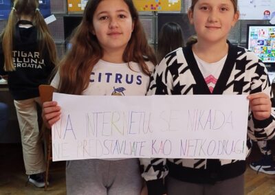 Tijekom veljače u našoj školi obilježavamo Dan sigurnijeg interneta kroz razne edukativne aktivnosti. Učenici 4. b razreda su s učiteljicom Tanjom razgovarali o važnosti zaštite osobnih podataka, sigurnom ponašanju na internetu te prepoznavanju opasnosti poput neprimjerene komunikacije i groominga. Ovakvim aktivnostima potičemo odgovorno i sigurno korištenje interneta te razvijamo digitalnu pismenost i međusobno poštovanje.
