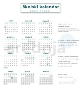 - Nastavna godina počinje 8. rujna 2025. godine, a završava 12. lipnja 2026. godine.
