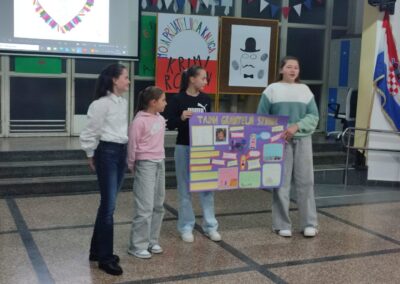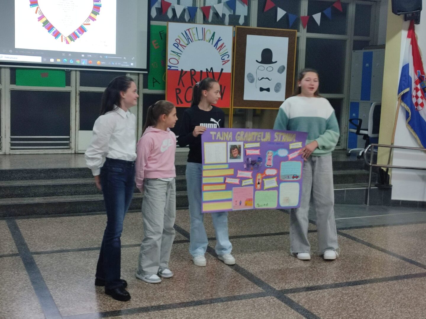 Odazvali smo se na poziv, a tema ovogodišnje manifestacije je bila kriminalistička priča. Iz naše škole sudjelovale su učenice 6. b razreda – Natali Katić, Ela Sminderovac i Lara Strmota, a iz 8.a učenica Ivona Božić, čija voditeljica je bila učiteljica hrvatskoga jezika Katica Brajdić.