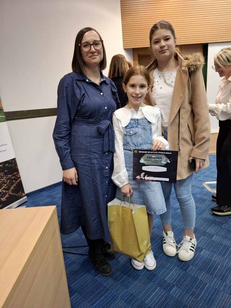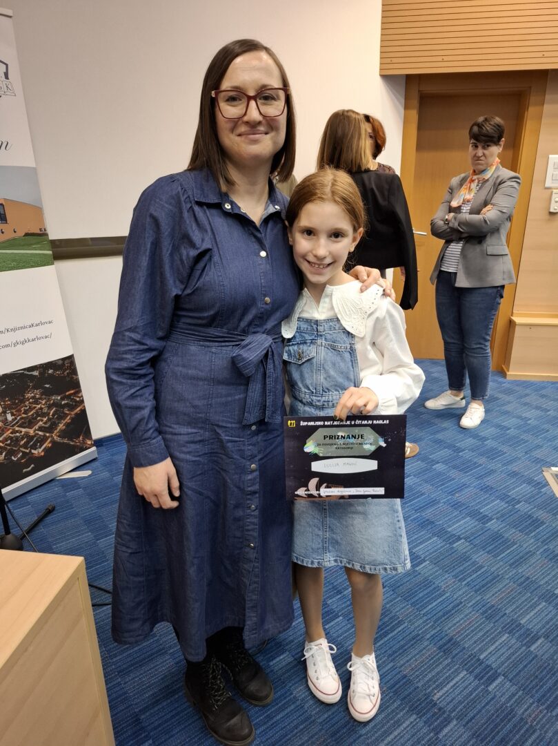 Jučer je u Gradskoj knjižnici “Ivan Goran Kovačić” Karlovac održano 10. županijsko natjecanje u čitanju naglas. Našu školu predstavljale su Lucija Magdić koja se natjecala u mlađoj kategoriji (od 3. do 5. razreda) i Antonela Cindrić koja se natjecala u starijoj kategoriji (od 6. do 8. razreda). Učenice su bile odlične, a posebno smo ponosni na našu Luciju koja je osvojila prvo mjesto i plasirala se na državno natjecanje koje će se održati 21. studenog 2025. godine u Sisku.