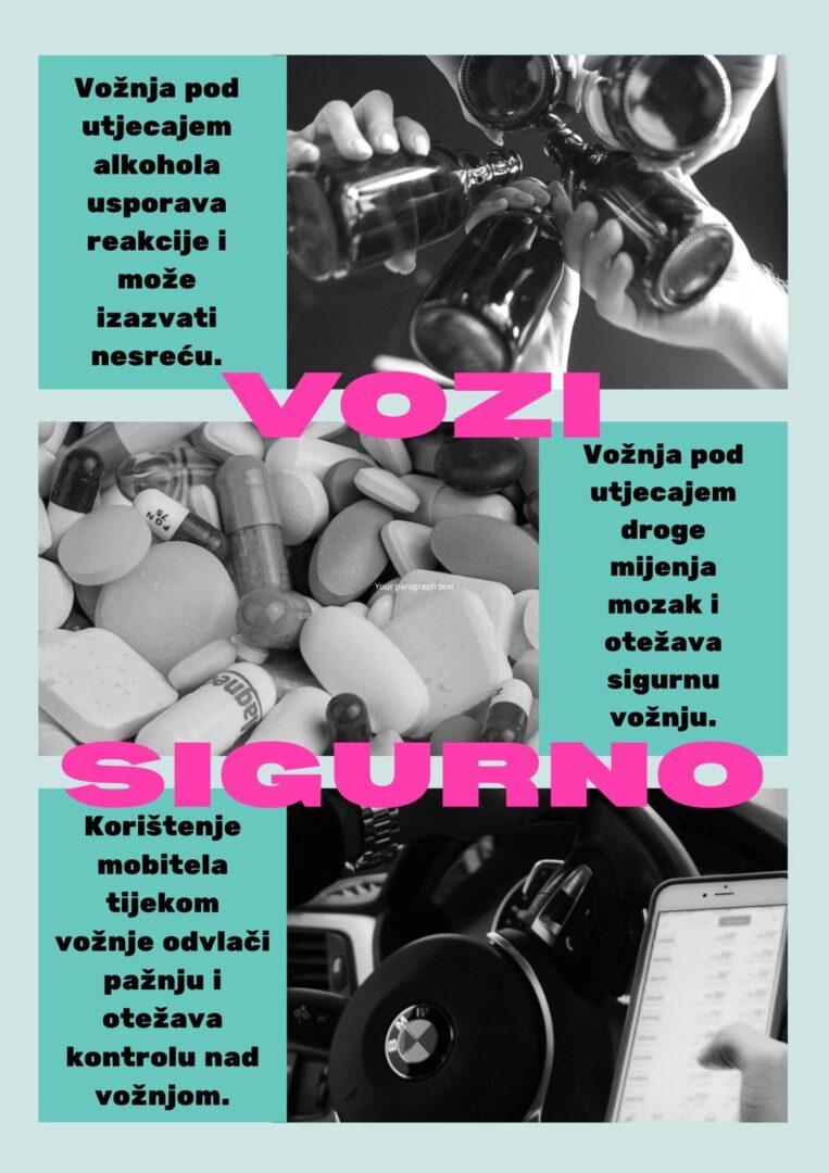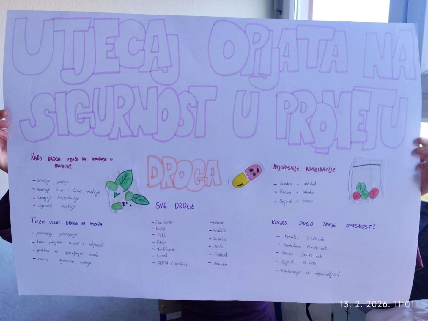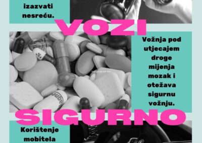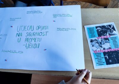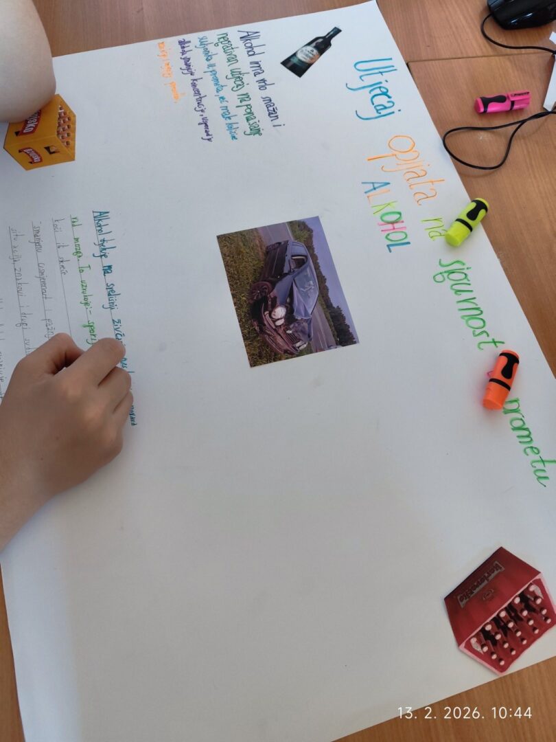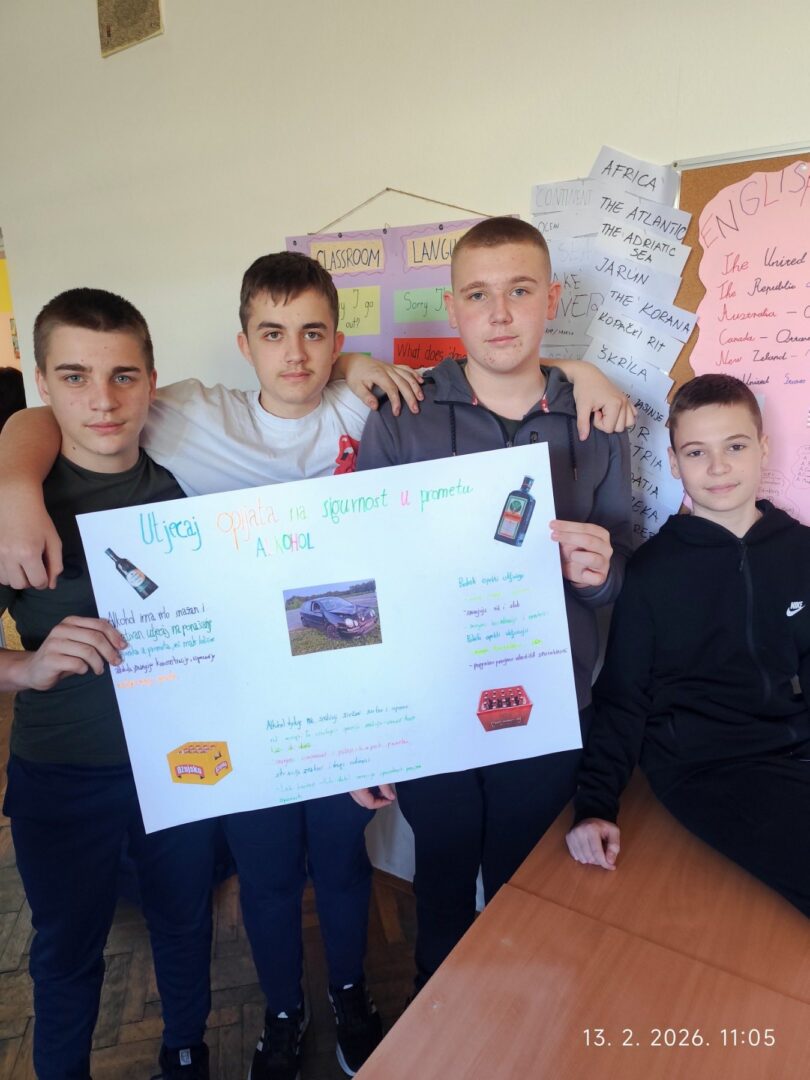 U sklopu programa policije i Fakulteta prometnih znanosti za provedbu preventivnih prometnih aktivnosti učenici 8. b razreda su zajedno sa razrednicom Margitom Kozina tijekom dva sata razrednika obradili temu “Utjecaj opijata na sigurnost u prometu”.