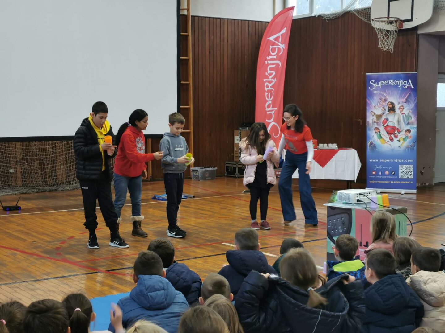 Danas je u našoj školi održana interaktivna kazališna predstava u organizaciji projekta “Superknjiga”. Predstavu su gledali učenici od 1. do 5. razreda. Superknjiga oživljava biblijske priče na zabavan i poučan način, prateći avanture dvoje djece i robota koji putuju kroz vrijeme.