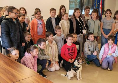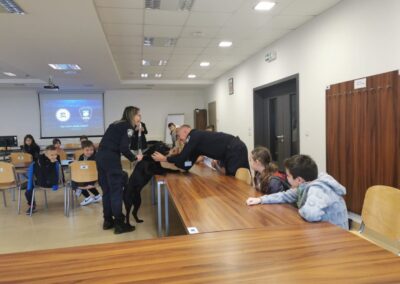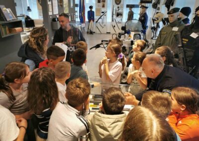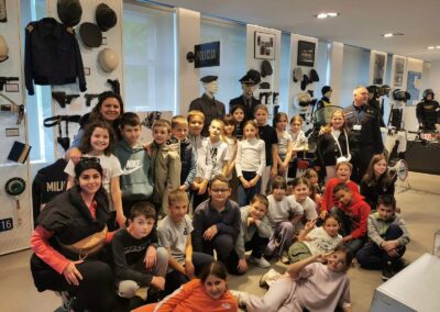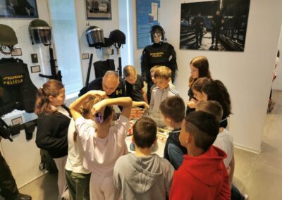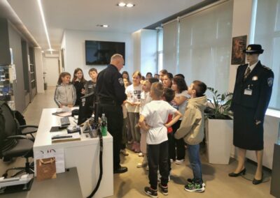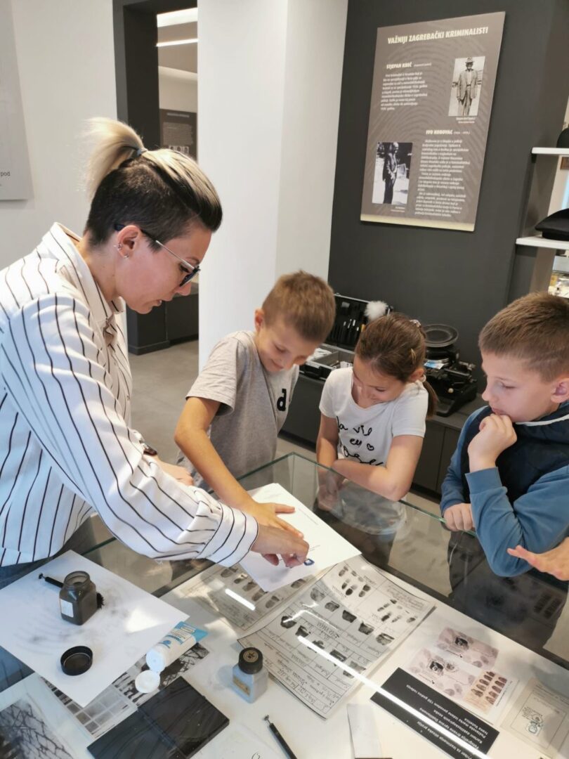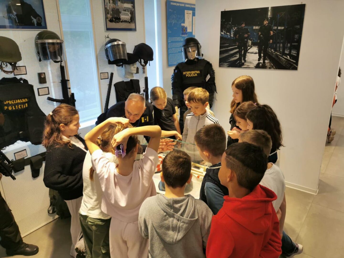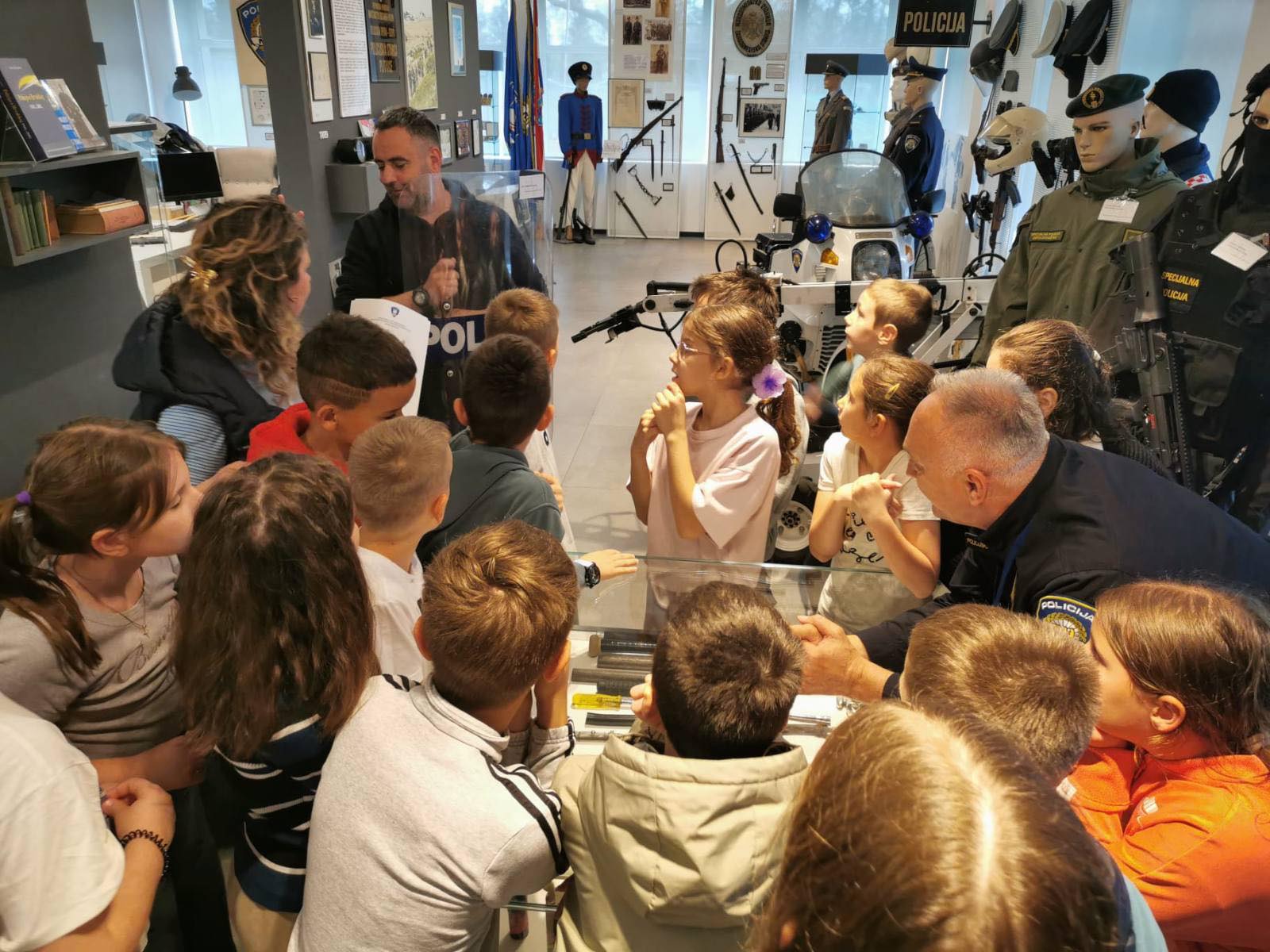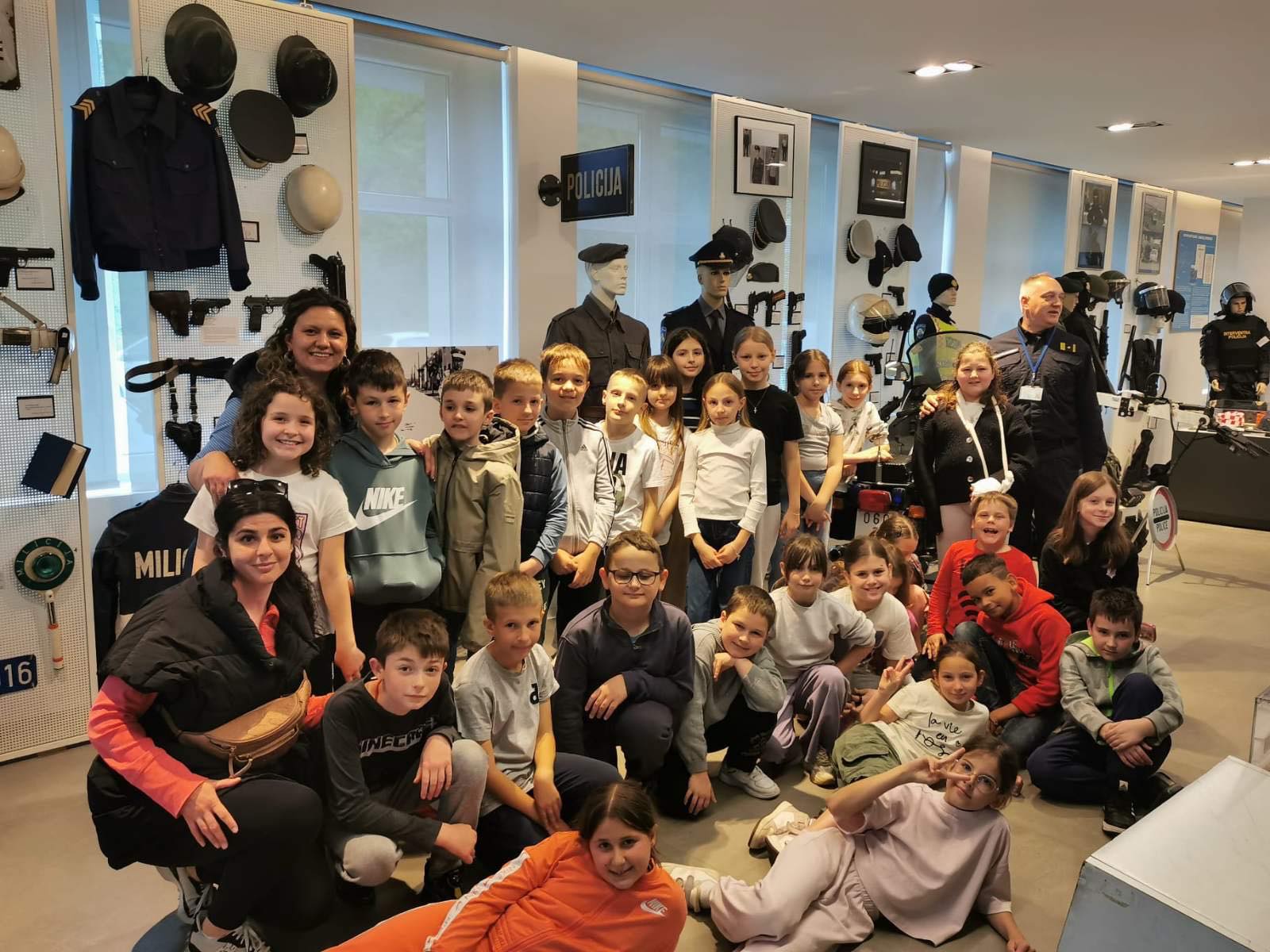 Sljedeće odredište, nedaleko Zoo-a, Muzej policije, iskreno nas je oduševilo: topla dobrodošlica, stručno vodstvo policijskih službenika i veliki trud oko učenika, svima ih preporučujemo. Obilazak smo započeli u Centru za obuku vodiča i dresuru službenih pasa gdje smo upoznali Snoopyja i Tori  i naučili o važnosti i velikom doprinosu policijskih pasa svakodnevnom radu policije. U Muzeju policije smo se dobro zabavili, puno toga naučili. Razgledavali smo mnoge izložene predmete, jako zanimljive, a koje u radu koriste ili su nekada koristili policajci. Naučili smo ponešto o otiscima prstiju i kako ih policija koristi u svom radu te za uspomenu kući ponijeli otisak dlana.