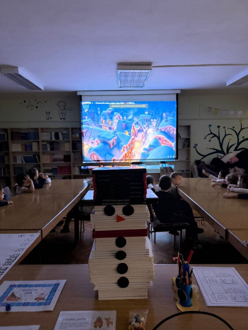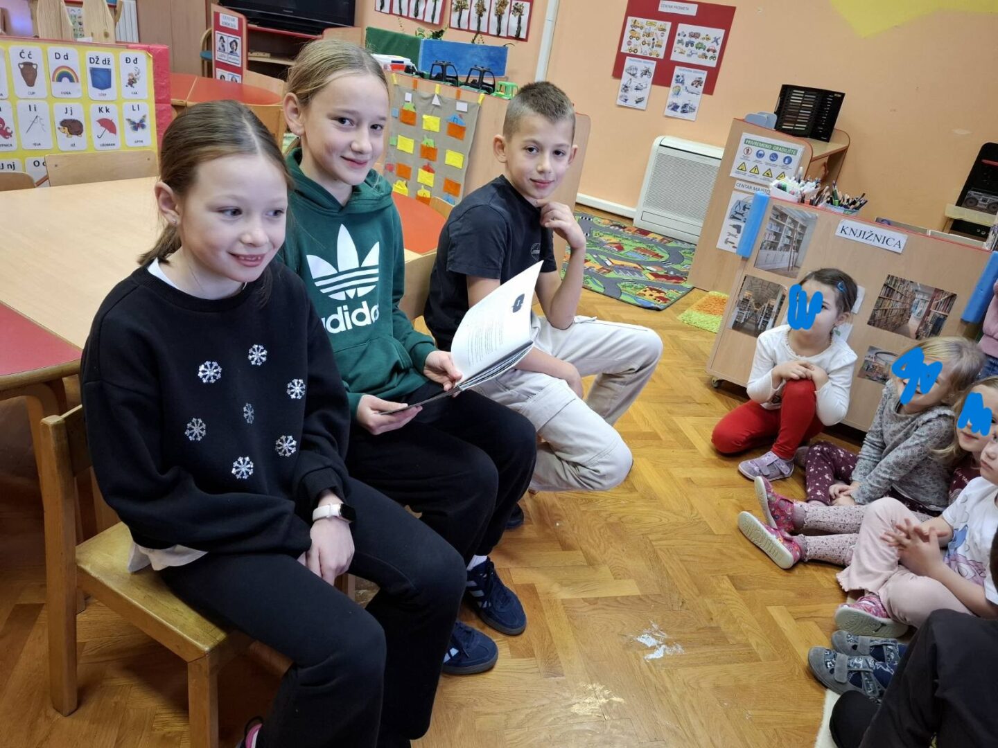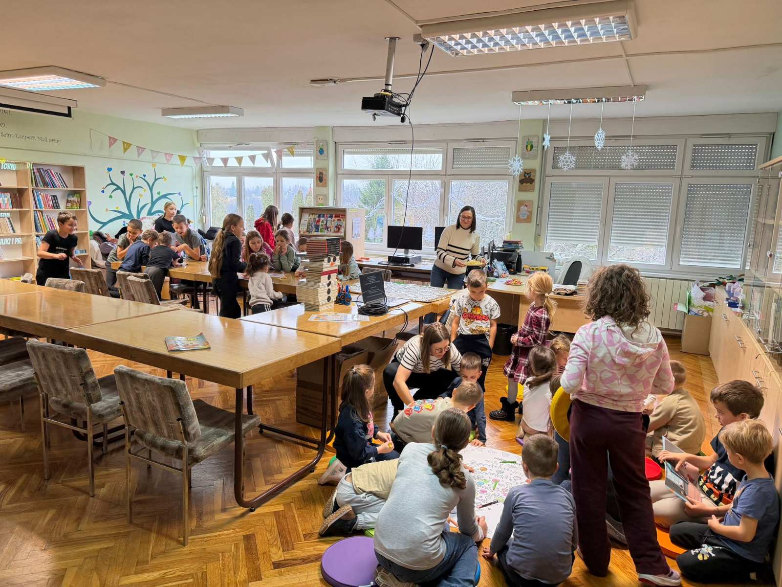 U suradnji s Dječjim vrtićem Slunj od listopada do prosinca ove godine provodili smo književni projekt „Veliki čitaju malima“. Projekt je započeo 27. listopada 2025. godine na Međunarodni dan školskih knjižnica kada je mješovita vrtićka skupina „Sovice“ posjetila školsku knjižnicu. Malene „Sovice“ su tada poslušale priču „Jesenski Jesenko“ i igrale jezičnu igru Alias. S obzirom na to da smo svjesni koliko je važno poticanje čitanje od najranije dobi, spontano smo se dogovorili nastavak druženja sa „Sovicama“. Dogovorili smo se da će učenici trećih i četvrtih razreda odlaziti u njihovu skupinu i čitati im slikovnice. Ostvarili smo devet čitanja u kojima su sudjelovala 24 učenika. Čitali smo slikovnice: „Imam čudovište ispod kreveta“, „Mrljek i Prljek“, „Ružno pače“, „Moji novi prijatelji“, „Vuk osjeća krivnju“, „Vjeverice svađalice“, „Kako živi Antuntun“, „Božićne snjegopriče“, „Sjeverni jelen i dobrota“. U čitanju su uživali i veliki i mali. Sovice su posjetile i 4. a razred u školi, a predivno druženje zaokružili smo završnim druženjem u knjižnici. U knjižnici su vrtićanci pogledali animirani film „Božićna noć“, a pridružili su im se i svi učenici koji su sudjelovali u projektu. Zajedno su igrali društvene igre, bojali, čitali i uživali. Kako im je bilo pogledajte u galeriji.